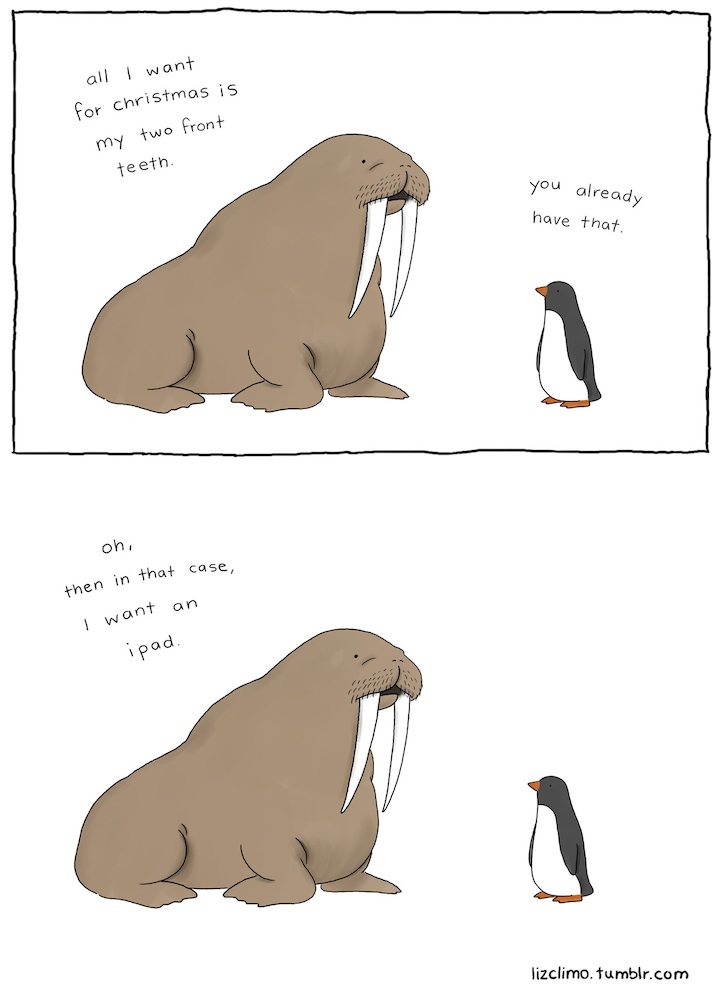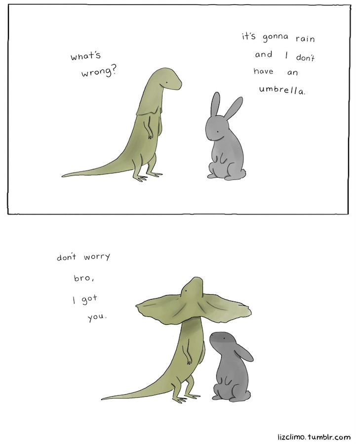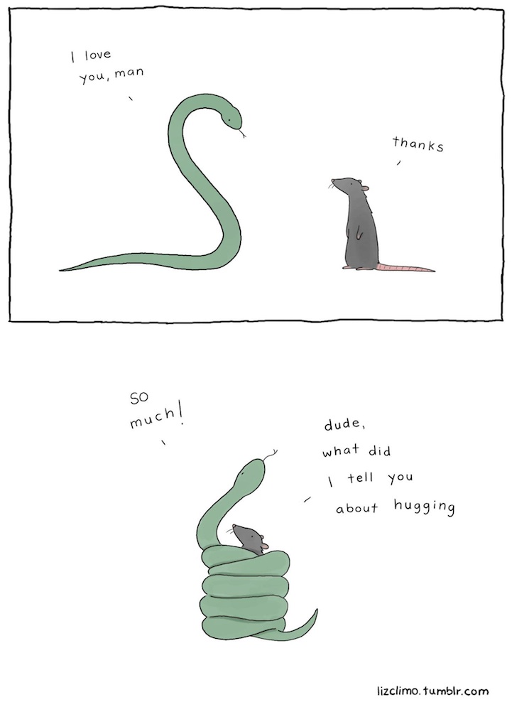 許多人認為台灣年輕人不思長進,天天只想著小確幸,但是生活有太多苦悶,不靠這點小東西紓解一下壓力可是會悶到得內傷的阿!跟大家分享來自 Liz Climo 的可愛小插畫,以小動物們的日常對話為主,幽默俏皮的風格每天都有上萬人被她小插畫給治癒,說不定你也會成為她的 Follower 喔!