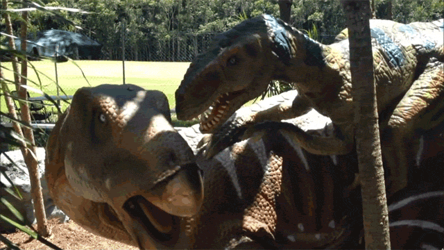 Palmersaurus Dinosaur Park 位在澳洲昆士蘭的 Palmer Coolum Resort,園內共有 160 隻可動式恐龍,園方依據它們在人類心中的印象來設計動作,例如肉食類的就是張大嘴露出利牙、草食類就是擺動著腦袋左搖右晃,每隻看起來都挺忙的,唯一比較弱的就是飛行系恐龍了,畢竟它的專長就是飛翔,偏偏只能被吊在半空中隨風搖晃,算是整個公園裡頭看起來最沒殺傷力的類型了(苦笑)