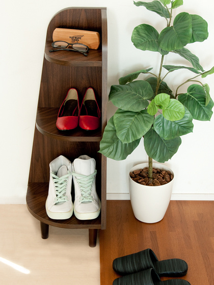 放在玄關入口當置物鞋架,木製的材質也能烘托居家簡約質感。