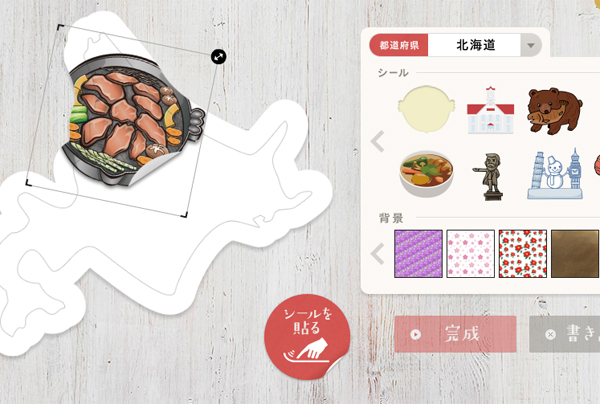 除了純手繪之外,也可以改用公版手繪圖,依照各縣的特產設計的公版貼紙,可以自由放大旋轉拼貼,做起來也是挺有模有樣的!