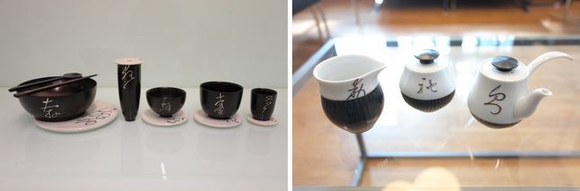 藝拓國際與工藝師黃宗帝合作的餐具,以木銀鑲嵌及貼鑲嵌技術展現古代狂草書法元素,打造出有字樣裝飾的傳統實用茶具。