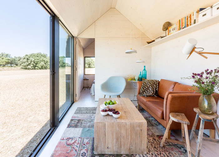 不過ÁPH80小屋看似迷你,卻是五臟俱全、並適合單人居住的完整空間,不但有著1房、1廳(客廳兼廚房)、1衛的3個獨立空間設計,客廳更裝置大片落地窗,將戶外景致與自然光引入室內,也營造出通透感。
