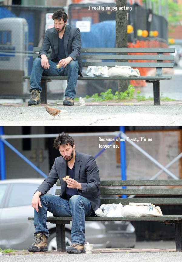 一切的起源就是這組照片,路人逮到野生基努李維一個人坐在公園吃東西,衣著簡樸不修邊幅的模樣,看起來竟有點孤單,於是人們開始稱他為「Sad Keanu」。(photo source)
