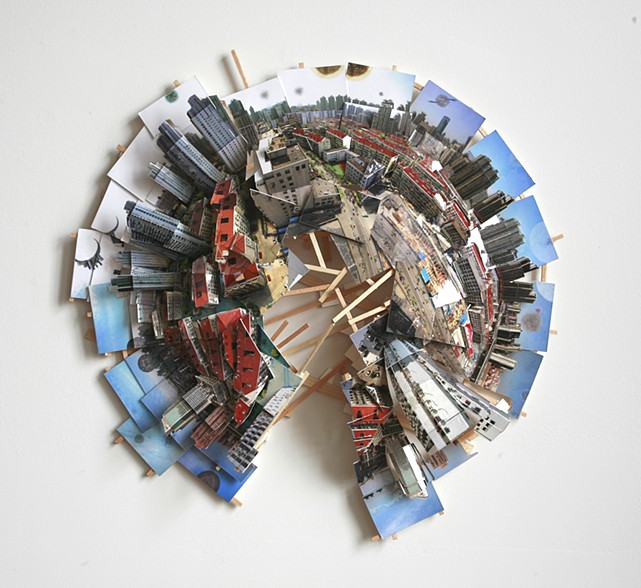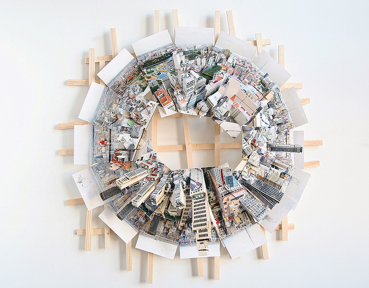 仿照從上空俯瞰城市的感覺,Isidro Blasco 以上帝視角的概念來創作,不過她不靠軟體幫忙,而是發揮萬能雙手來完成這項作品,靠的是意志力與耐心,近看作品會看到每一棟大樓都像立體卡片一樣順著輪廓線條摺疊剪裁,她利用旅行的機會在大城市取景,並不單純只想拍照留念,而是更進一步用平面照來詮釋具有層次感的立體風景,畢竟這才更符合現實景觀。