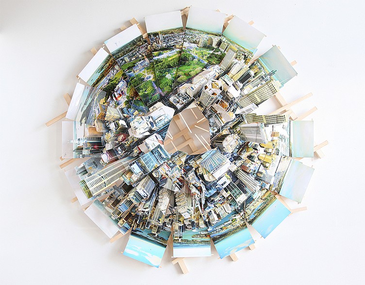 就算再不濟事的智慧型手機也會有一兩個APP可以用來拍攝全景照,但是沒有智慧型手機的人難道就只能乾瞪眼了嗎?紐約攝影師 Isidro Blasco 示範了一個超強的招式,以人工方式把多張照片拼接成全景組圖,並且相當費工地作出建築物的立體線條,儼然就是一幅立體城市紙雕藝術品,可不是速成的所拍照軟體辦得到的阿!