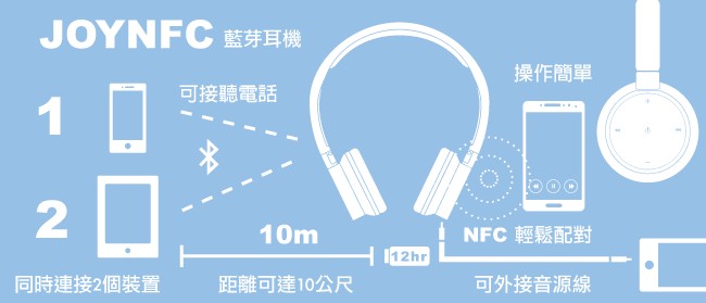 除了配色很有搞頭之外,功能面也比一般耳罩式耳機多了點樂子,除了傳統的3.5mm耳機線之外,它也支援藍牙和 NFC 配對,藍牙還可同時連接兩個裝置,頗為方便的。