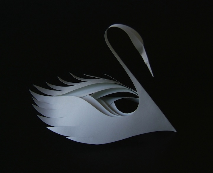 大多數人的摺紙能力最高只到紙鶴的階段,不過世界各地有不少神人將紙藝帶到千變萬化的境界,北京紙藝家 Bijian Fan 就把紙幻化為優雅的白天鵝,從滑順的頸部曲線和交叉飛揚的羽毛,把紮實肌肉的重量感和輕柔的羽翼同時用一張紙呈現出來,實在讓人驚艷不已啊!