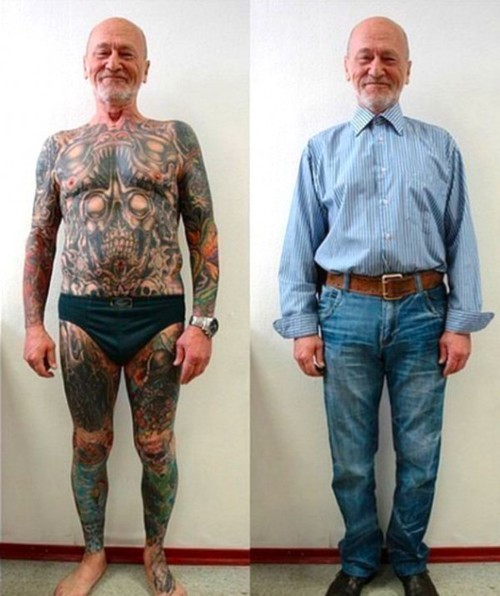 明明看起來是個和藹老人,殊不知衣服一脫竟是滿身刺青,真是嚇倒人!