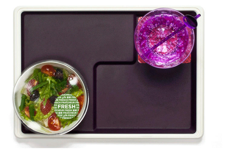 英國工業設計公司 MAP 針對維珍航空(Virgin Atlantic)的需求,設計了一款適合機上餐飲服務的食物托盤,採取極輕量的材質,盡可能減少體積與重量,每台餐車將可增加 33% 的餐盤盛裝量,這對在飛機上一切的體積重量都必須斤斤計較的航空公司而言,無疑是一大福音。除此之外,飛機承載重量的減輕,連帶減少燃料的消耗與廢氣的排放,估計可為未來十年省下一筆龐大的燃料開銷。