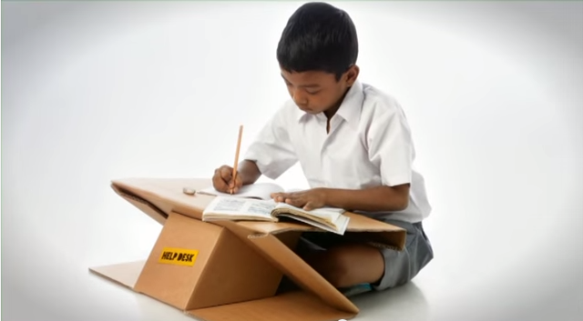 上學,對生在台灣的我們每一個人,是一件很自然的事。到了學校,穿上制服、領到課本、教室有課桌椅、黑板、學校用具,基本的學習配備是不曾缺少過。然而,在一些發展中的國家裡,其學校中的學習環境與配備,尚未完善。像是在印度,孩子們坐在地板上聽老師上課,是許多村莊的常態。然而,坐在地上寫字,對於發育中的孩童其姿勢、視力上都會有所影響。有鑑於此 NGO 組織 Aarambh 希望可以找到一個有效率並且符合當地環境經濟效益的解決方法。最後,他們設計了一款名為「Help Desk」的產品。