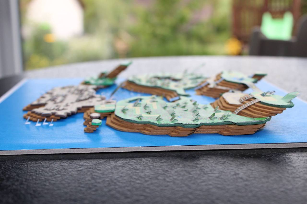 作者 Wuppes 用紙板當底材,先將場景圖印出來,把裡頭的每一樣物品單獨切割出來,再依據它們之間的高低差來排列,技術上來說算不上複雜,只需要簡單的空間概念,真正困難的點在於要很有耐心,有點像拼圖一樣,都不是兩三個小時就能組裝完成的。