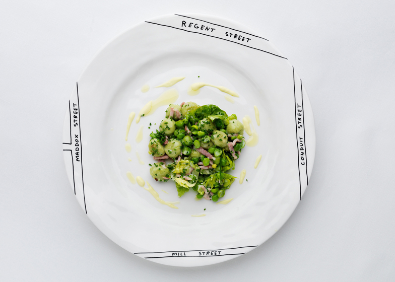 餐盤上的線條塗鴉其實就是店家的所在地圖喔,打開 Google Maps 對照就會發現這個有趣的概念。