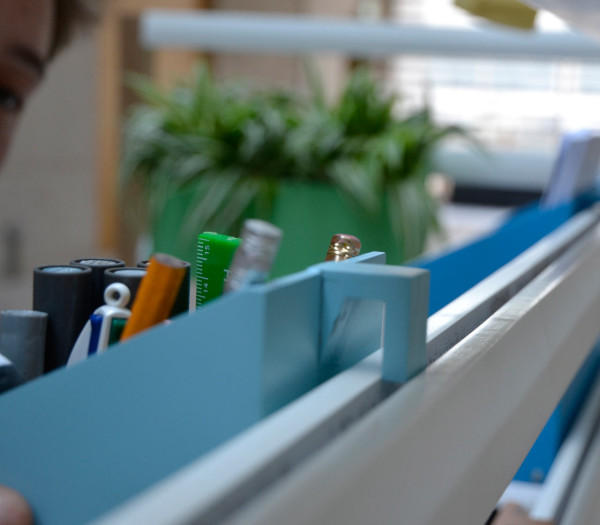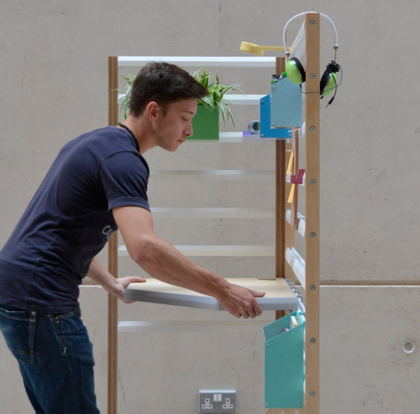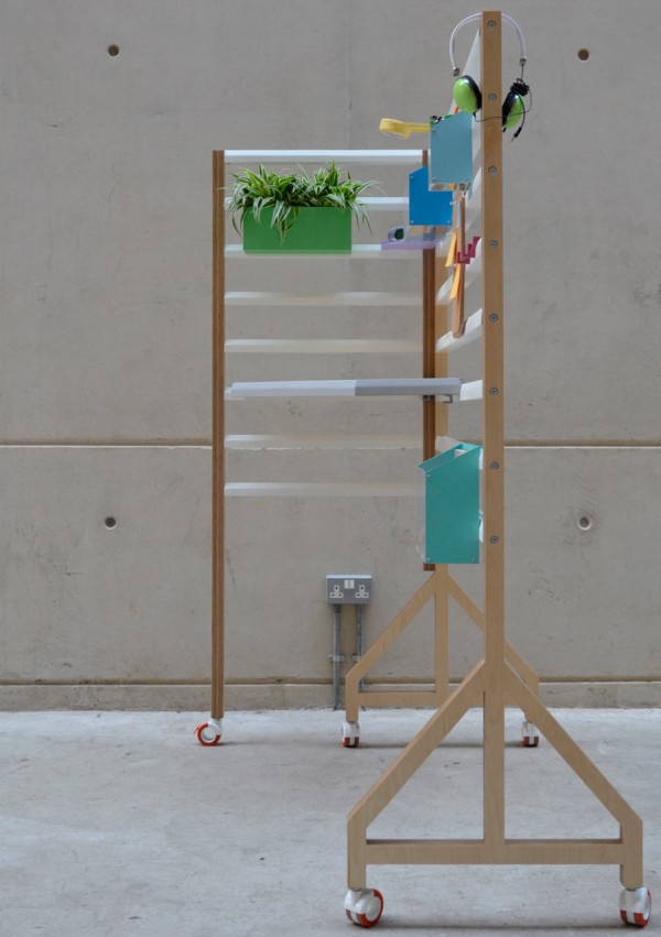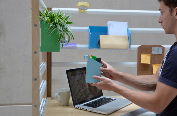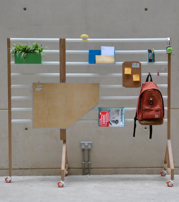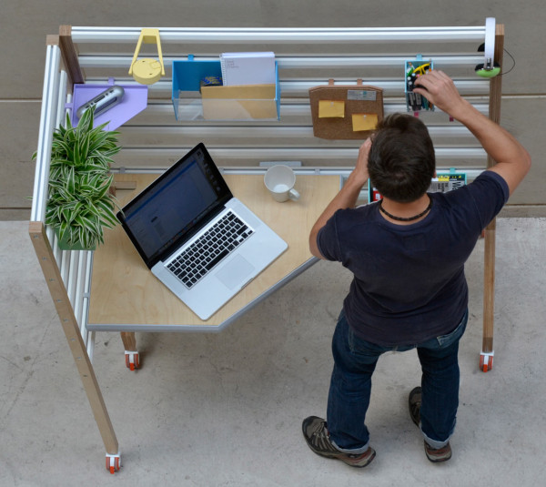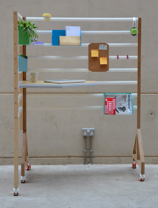 現在相當流行開放式辦公室,認為這樣的空間規劃有助員工們互相交流,對於需要大量創意或者腦力激盪的工作性質來說相當適合,但有時還是需要有個象徵性的隔間讓人可以更專注在眼前工作上,Your Position 木架就是個頗具彈性的解決方案,L 型的附輪木架可以橫向打平,不用時就平貼在牆面讓出空間,橫桿木條可以暫時放置各種東西,例如耳機和工作用的參考設計書籍等,還有各種改造過的辦公用具,在背後加上掛勾固定在橫桿上,更特別的是,連工作桌板的高度也能隨意調整,不管是"能坐就不想站"或是覺得"站著工作更有精神"的人都能靈活使用!