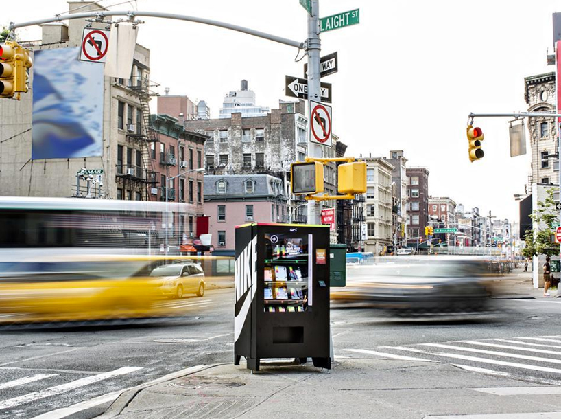 NIKE+ FuelBand 是 NIKE 自家推出的運動手環,可以紀錄整天活動下來用掉的卡路里數,評估個人的體能狀態和運動狀況總結出一份 FuelBand 指數,這次在紐約的活動就是需要這項指數,配戴者只要將 NIKE+ FuelBand 上面的USB插進機器感應,就可以知道你目前的運動點數可以兌換到甚麼週邊,不過這項活動屬於打游擊戰的快閃形式,不僅每個禮拜都會換地點、而且也不會大張旗鼓地事先通知,只會拍一張照片貼在社群上讓粉絲們集思廣意動腦猜破頭,也算是某種程度的益智遊戲吧XD