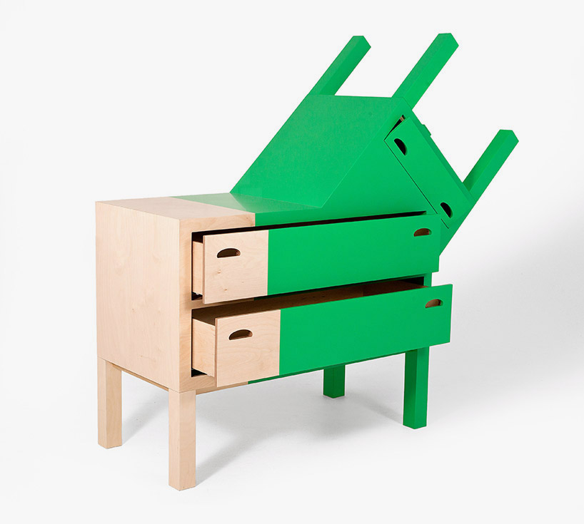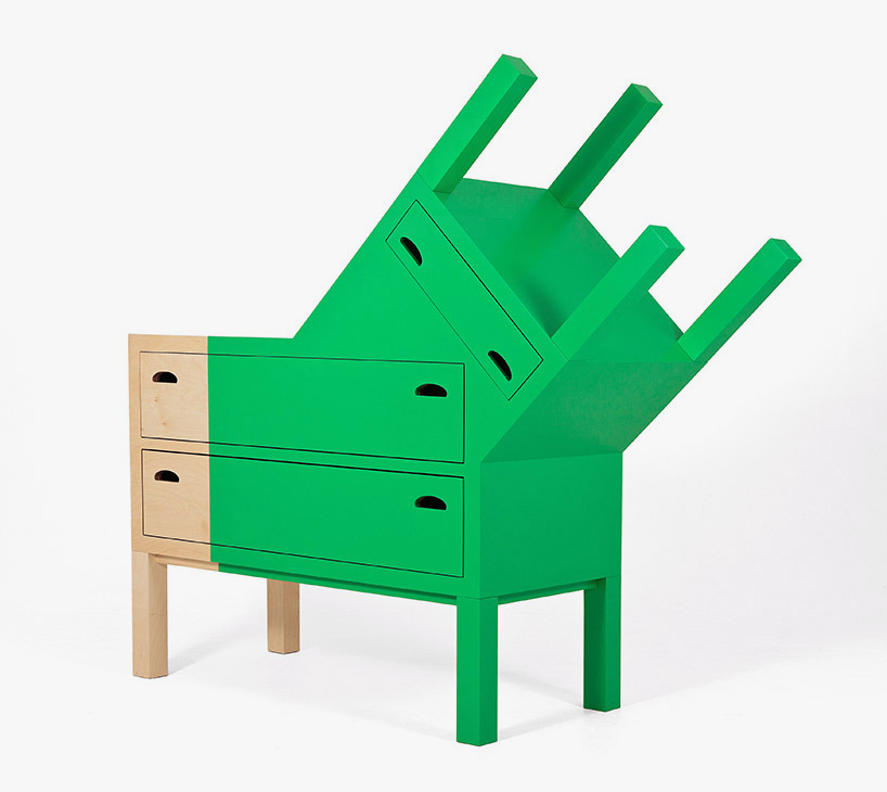 Ana Jimenez 表示,他的目的是希望透過創作過程,更加深入了解身為墨西哥人的意義,並且在不使用面具和相關製作技巧、改以文化角度切入,創作出現代化的作品。對於有面具恐懼症的人們來說,這樣的意象轉化不只削弱了面具空洞眼神帶來的壓迫感,也讓中規中矩的家具變得活潑有趣囉!