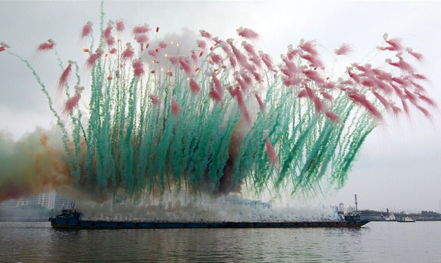 8 月 8 日下午,上海外灘出現聲聲巨響,嚇著不少市民,原來是以玩火著名的藝術家蔡國強,特地選在黃浦江面獻上水墨畫般的「白日煙火」,做為接下來在上海當代藝術博物館、蔡國強特展的序幕。