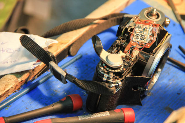 對 Vimon 來說,修理底片相機比修理數位相機還容易,因為底片相機是遵循著最基本的光學與機械原理,只要摸熟了就好,但是數位相機卻是結構複雜的電子產品,有時候幾乎很難診斷哪裡出了問題。