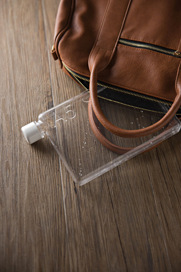 由來自墨爾本的Jesse Leeworthy和加州Jonathan Byrt所設計的memobottle,顧名思義,就是形狀和紙張一樣的瓶子,一共分為Letter size、A4、A5三種大小。扁平式的瓶身,和筆電或書本放在一同放在包包裡,簡直薄到讓你幾乎忘了它的存在,只有渴了時才會想起它。而且僅管瓶子扁歸扁,容量卻還是有750毫升到1.25公升不等,可說是達到容量不變,體積卻更節省空間的實用設計。