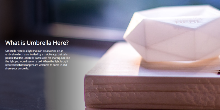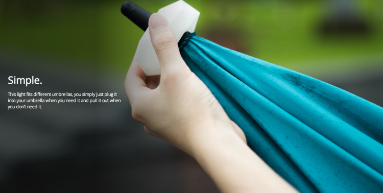來自香港的團隊,便基於這樣的想法,設計了一盞可套在傘上的燈「Umbrella Here」。設計概念是想透過亮燈告訴別人:如果看到燈亮了,代表我願意分享自己的雨傘!像是計程車頂上頭的燈,燈亮了表示空車,可以搭載客人!這樣主動傳遞善意與幫助別人的意願,人與人之間的距離也因此靠近許多。