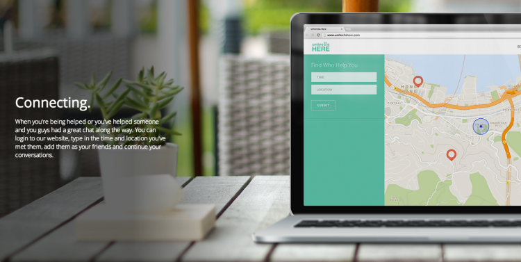 裡頭還有許多功能,像是它會持續記錄你與人分享過雨傘的次數以及走過的路線。 UmbrellaHere除了連結人與人之間的關係,還可連結自己與雨傘的距離。相信大多數人都有掉傘的經驗,而這個貼心的裝置,會提醒你不要忘了拿傘!