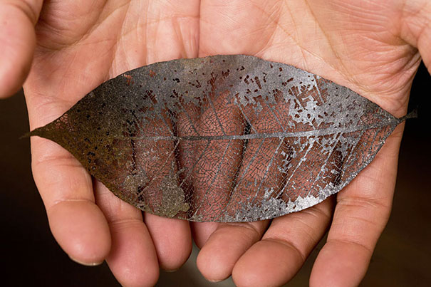 乾枯的數葉葉片乾枯後露出如細密網路一般的葉脈,也是許多壓花愛好者的收藏,藝術家長屋明竟然以紙雕將大自然的細膩之美一刀一劃呈現出來,呈現精巧的葉脈,技藝可稱為巧奪天工了!