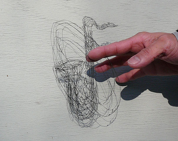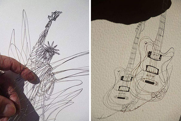 如同紙上隨筆一般的插畫,就像是藝術家的草稿,經過藝術家的呈現變成了宛如鐵線纏繞出來的圖案一般,別具特色,光是要完美裁出一條細線就很困難,如此複雜的圖案實在是超乎我們的常識。