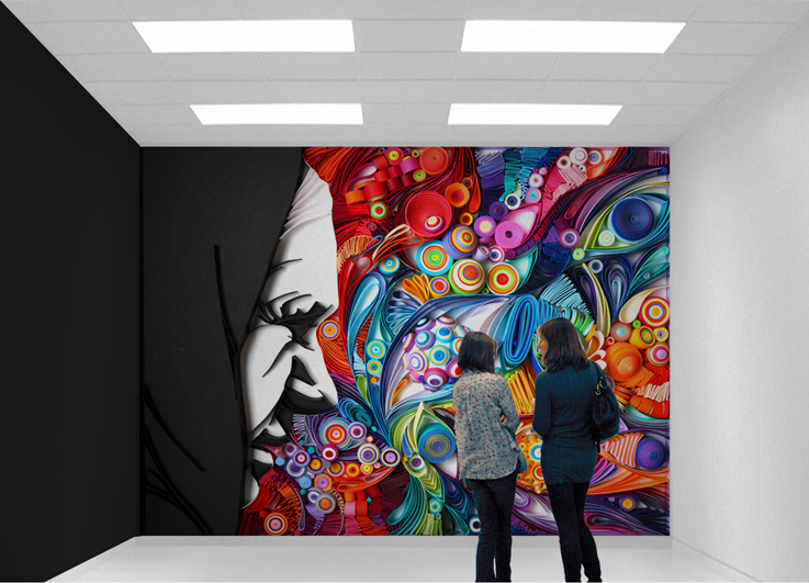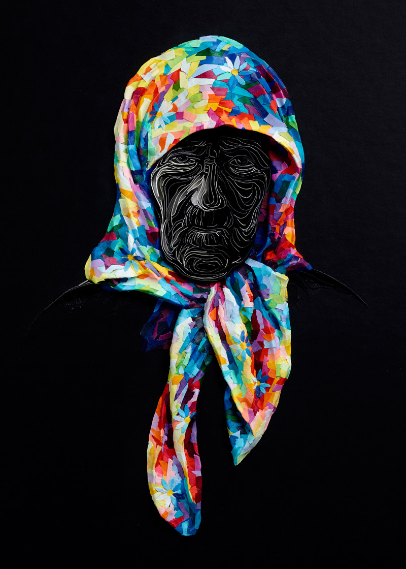 Yulia Brodskaya在捲紙藝術的世界打滾了六年,也因為其令人驚嘆的技巧陸續受到知名品牌的邀請創作,去年曾在香港辦展,作品絕大部分都是顏色繽紛鮮艷的圖樣,像個歡樂的嘉年華,不過也有一部分是視覺相當強烈的人像,細節更繁雜緊密,用色也偏中性低沉,形成完全兩種類型的對比。