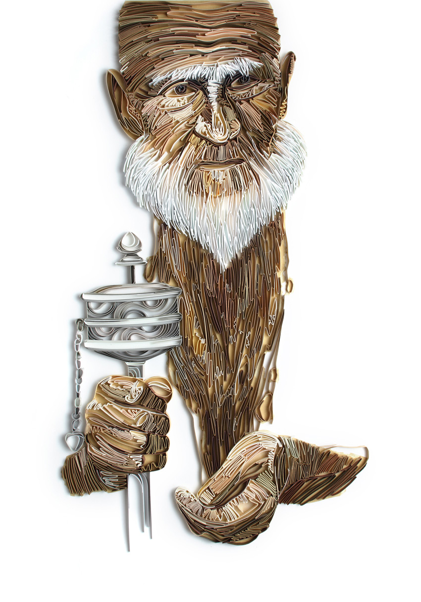 捲紙藝術似乎很適合用來製作臉部皺紋