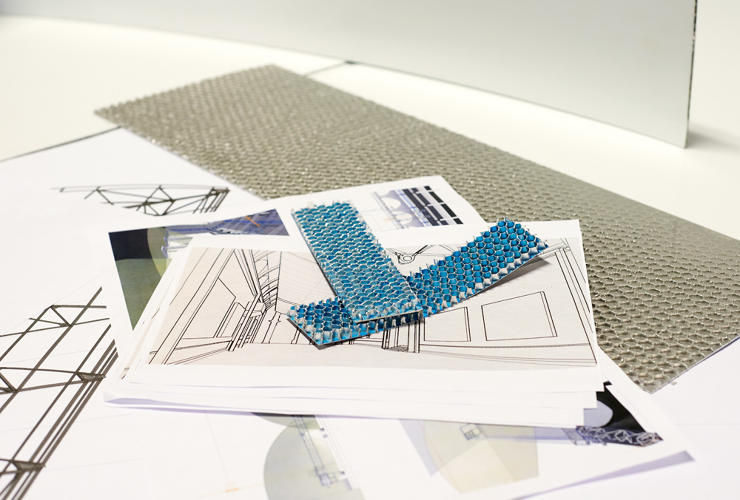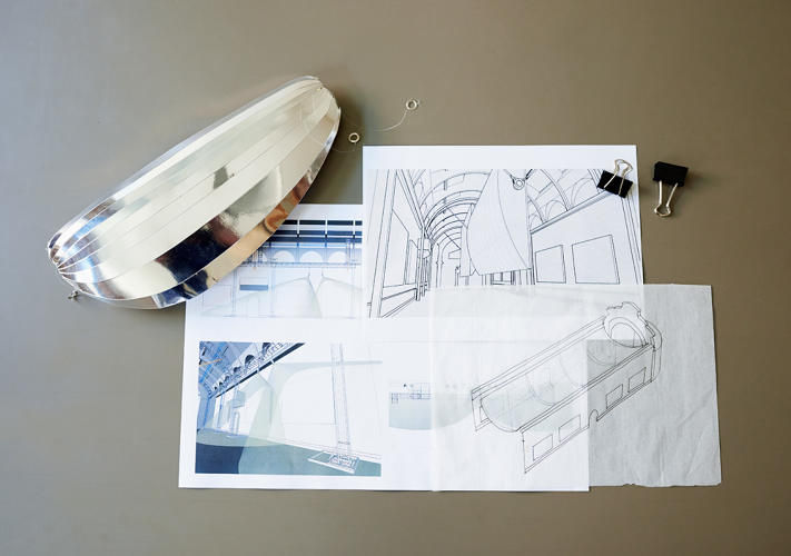 原本的概念是想作出殼狀反射體,經過幾次修改後才決定出掛簾式設計,是說那個殼狀金屬的外型實在似曾相似,嚴格懷疑設計師可能有參考過不鏽鋼舟型飯模(大笑)