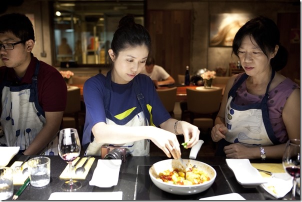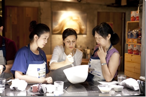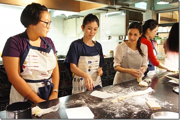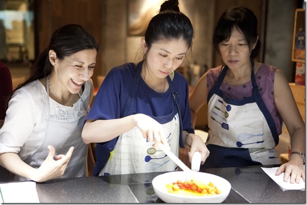 其實料理真的是一件很開心很好玩的事,好多次我都有在心裡默默說要學好,可是三分鐘達人不是蓋的,三分鐘後就過了哈。今天的義大利麵食課程講師是義大利老師 Pepe,Pepe 老師是這裡的當家花旦喔,人美親切廚藝讚。因為 Pepe 老師不太會說中文,一方面學做菜一方面也可以聽力練習,但還是有搭配翻譯 Crystal。