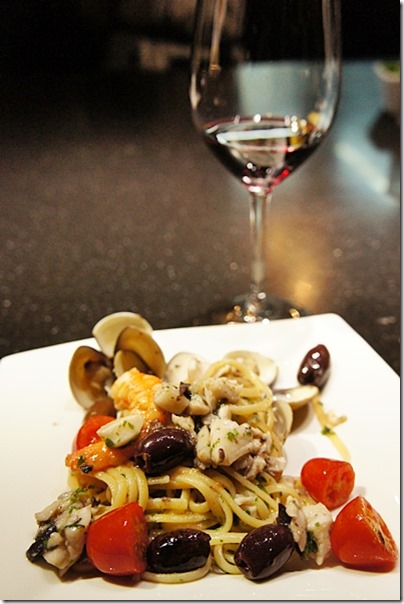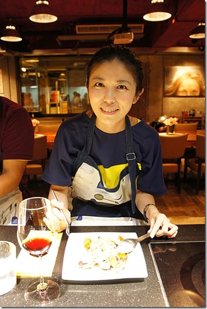 接著要學海鮮義大利麵,海鮮義大利麵很常見,但每個人作法不盡相同,因為義大利麵製作過程稍稍繁瑣一點 ( 也沒多繁瑣啦 ),所以由 Pepe 老師做給大家看。 看看我多認真,衝到好前方去拍照。