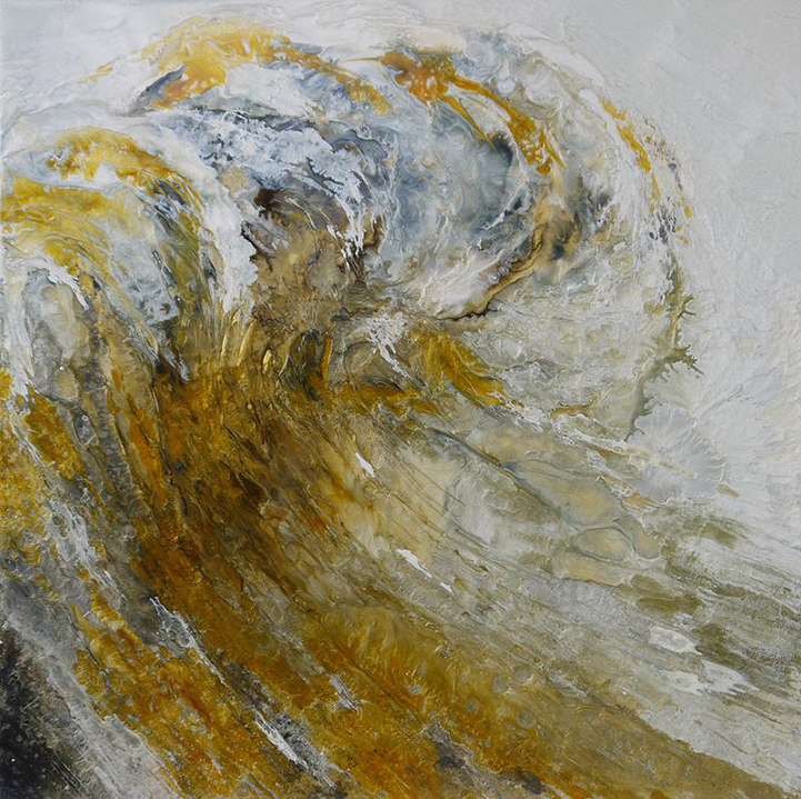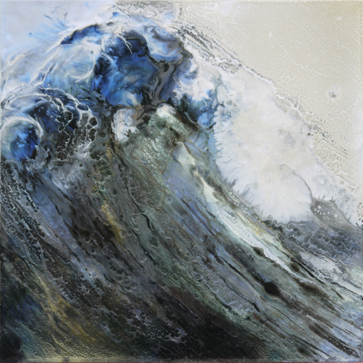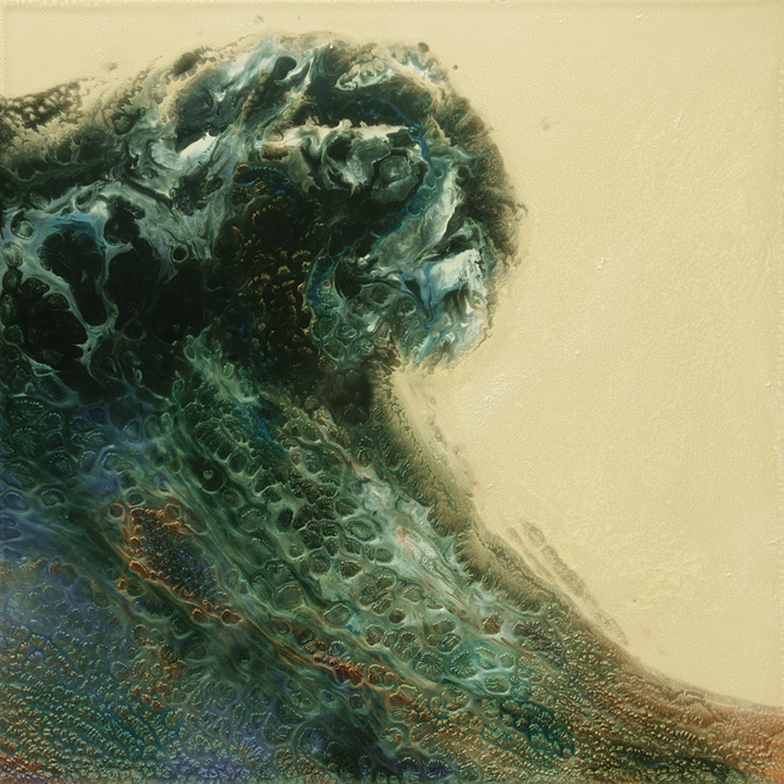 佔了地球面積百分之七十的海洋,既有吞噬一切的可怕力量,又平靜地像能包容一切的溫柔長者,自古以來就有許多關於海洋的故事,而在視覺藝術家 Lia Melia 眼中,大海則是充滿能量富有活力的,透過摹擬海浪奔騰翻滾的景象,傳達蘊含其中的強大能量和情緒。Lia Melia 的創作手法相當特別,她將顏料經過烘烤後再塗到方型鋁片上,有點類似烤畫的做法,只不過 Lia Melia 的版本看起來氣勢超磅礡,尤其烤過後的顏料轉化為膠狀亮澤感,就像真實海浪在陽光照耀下閃爍的光芒,如果能親眼看到實品,一定會更能感受到作品的震撼力吧!