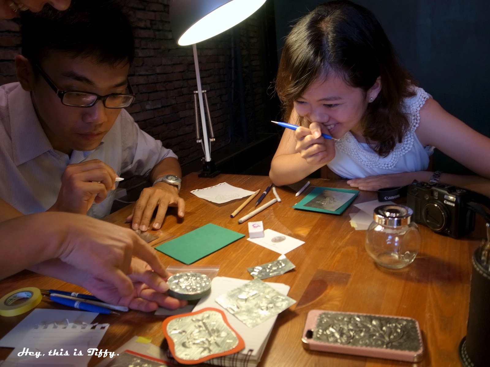 【緹菲知識小補充】:錫雕原本是源自於中世紀歐洲的教堂雕刻,因為錫片本身不似其他金屬類雕刻需要焊接或敲打,只需要簡易的雕塑工具即可,既可以擁有銀一般優雅明亮的光澤,又能有流暢精緻的線條表現。場地也不受限制,Nina 老師的第一堂課還是在 Burger King 完成的呢!