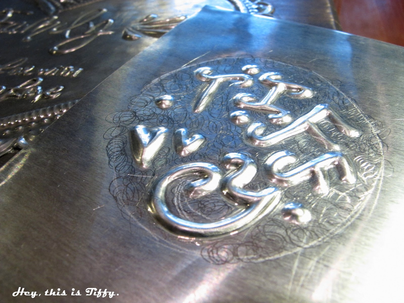 錫雕之所以讓我著迷,在於它能夠讓我自由地把心中喜歡的圖案和文字轉化成看起來超有質感的作品!(外觀看起來就很厲害啊) 明明只是普通的幾個英文字母,透過雕刻和錫片本身的特質,變成了很歐風的裝飾品,文字都不文字了 <3