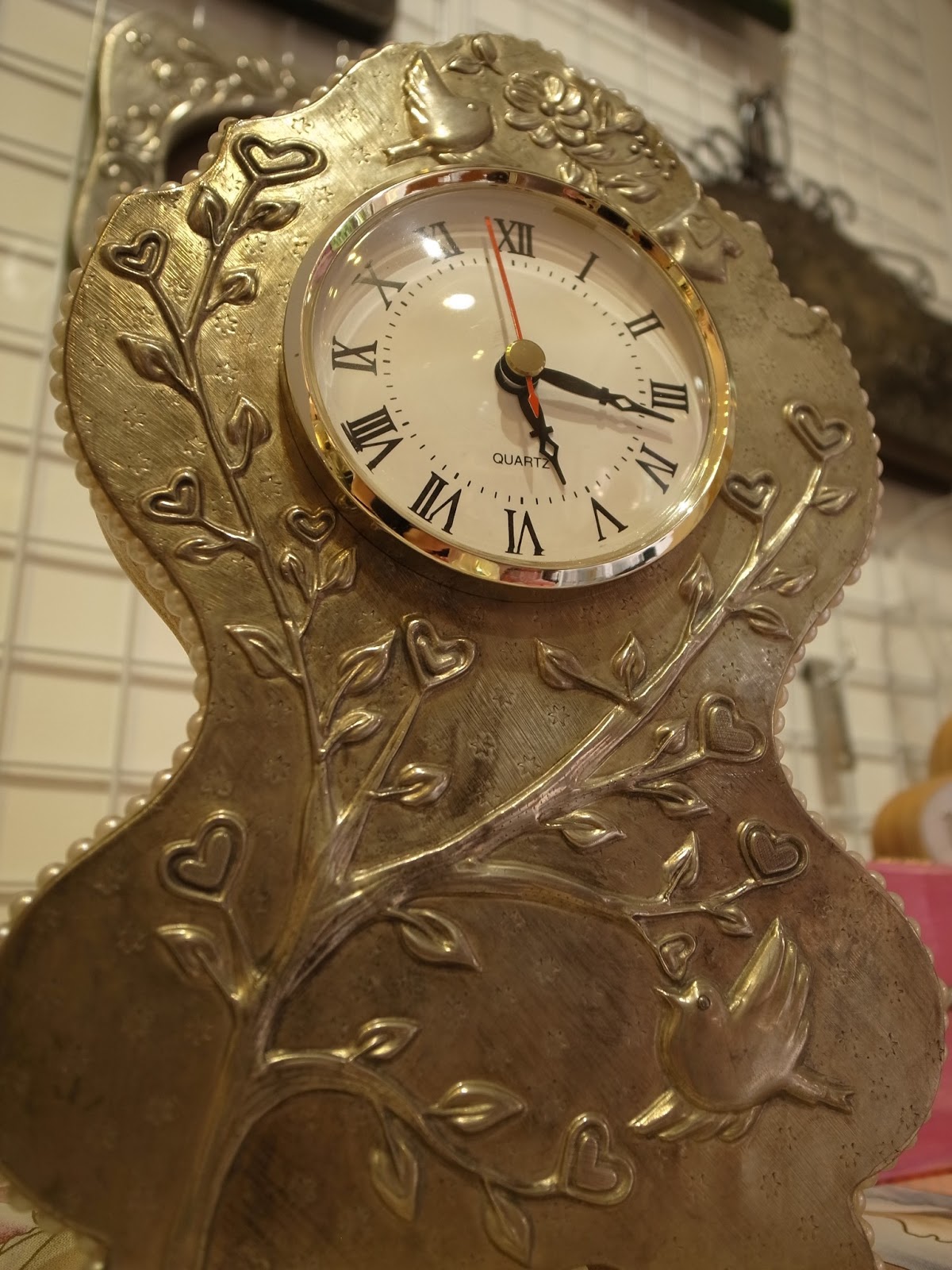 課程結束後,熱情又優雅的 Nina 老師邀請我們拜訪她的手工藝品店,在這裡整個大開眼界啊!小小的店面牆上放了好多復古奢華感的雕刻作品!我對於這些手工製成的成品常常有種莫名的悸動,也許是因為知道在這背後所需要花費的時間和心思,也可能是Nina老師的藝術謬思給了它們生命。我就好喜歡愛心樹的概念:現實生活中雖然沒有真正的愛心樹,但在錫雕的世界裡,Nina 老師將現實與想像結合,構思出會結出愛心的樹–象徵著家庭–而圍繞在樹四周的小鳥們像是每位家庭成員,雖然不會永遠停留在樹梢上,但樹始終在原地,提供牠們歇息的地方。