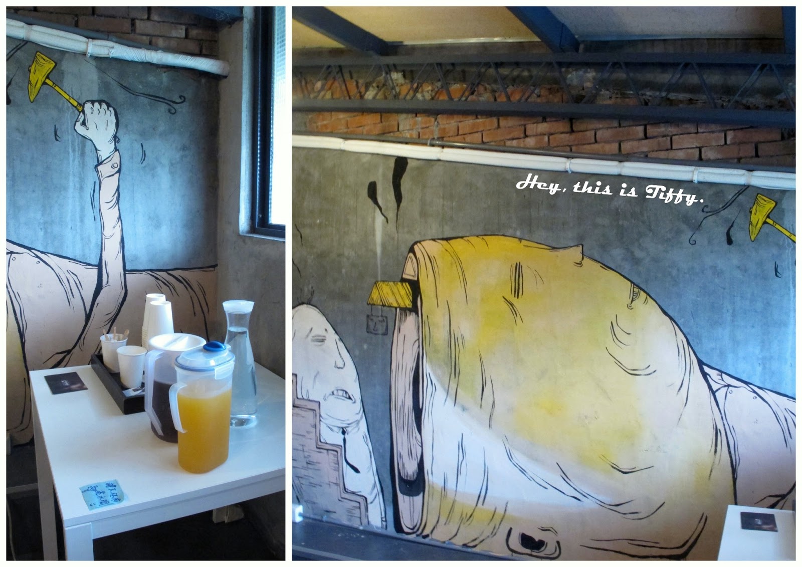 頂樓有著可愛塗鴉的就是教室了!還有貼心小茶水桌,剛好那天好熱,一杯沁心涼柳橙汁可以消消暑,讓心情沉澱一下要來做手工藝囉。