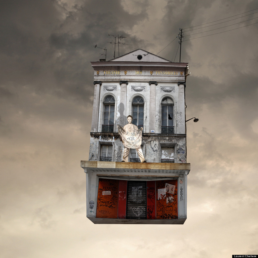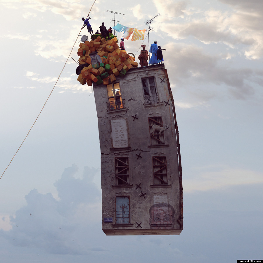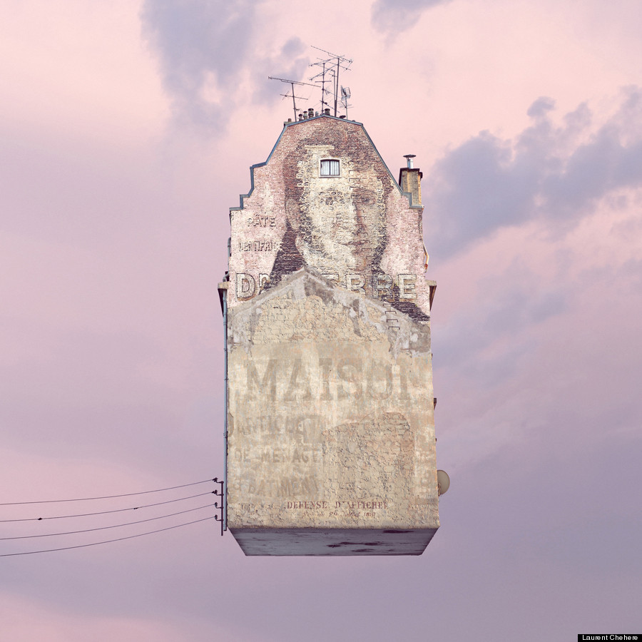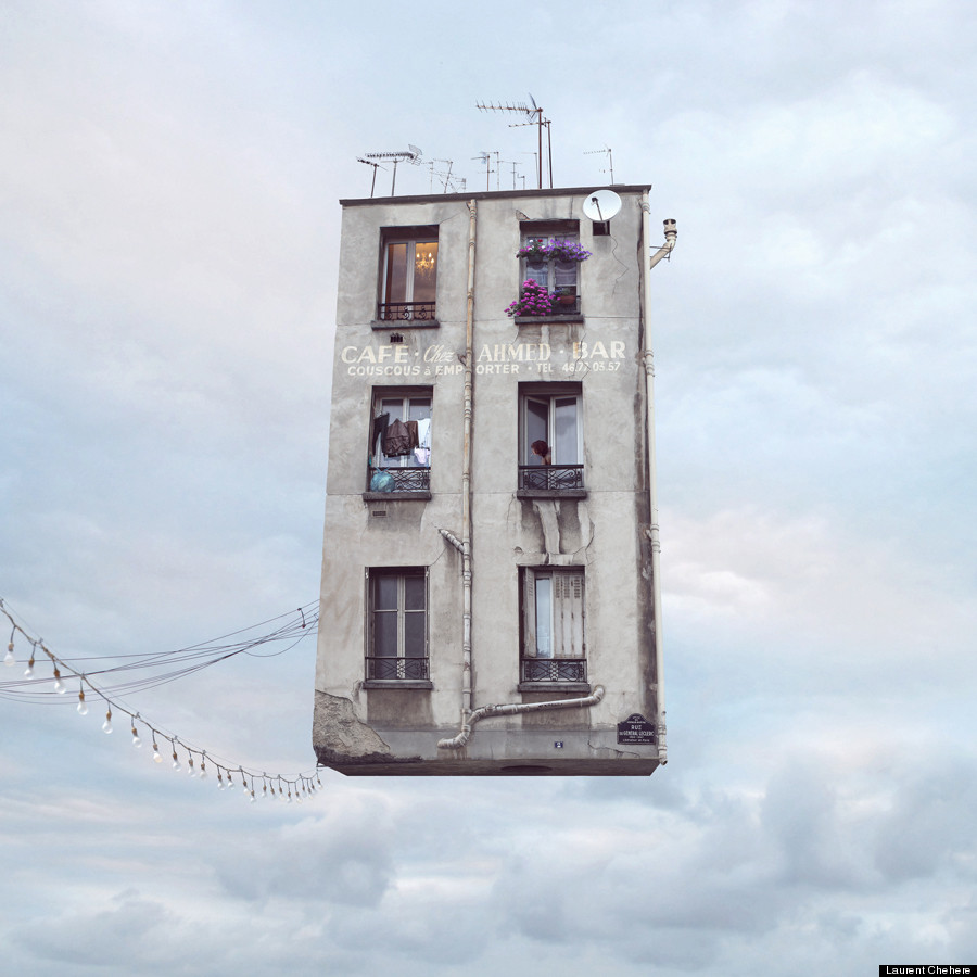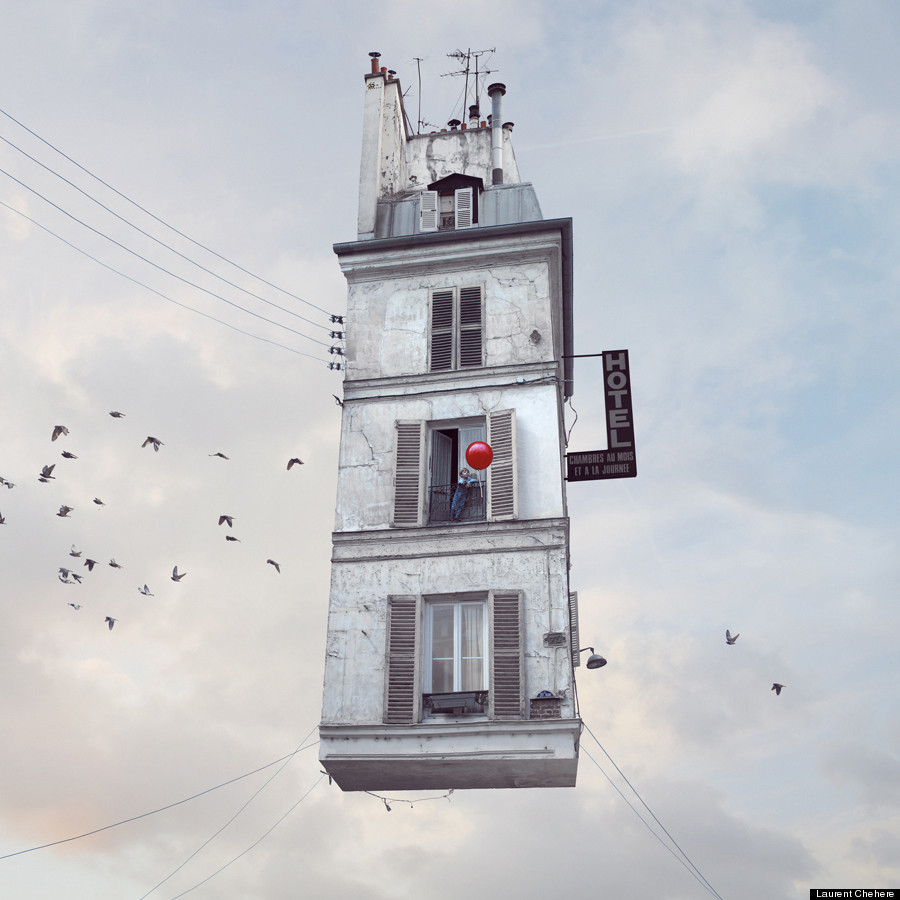 Chehere 的創作靈感來自於他在巴黎貧困地區所見過的房屋,以及《紅色氣球The Red Balloon》 和《霍爾的移動城堡》等帶著頹廢美感的電影,為了有別於導演 Albert Lamorisse 和宮崎駿的風格,Chehere 選擇以破舊毀損的法國建築作為主題,將它們轉變成不可思議的飄浮房屋。有的房屋裡塞滿了動物,有的房屋內裝外露,或是起火燃燒,經過 Chehere 的巧手編修後,每張照片都像一篇短篇童話故事,給予觀賞者天馬行空的想像空間,從房子的飛行方式到目的地,從房子內每個家庭的成員到彼此之間的關係、牽絆等等,隨觀賞者的角度不同,無限延伸出數百種、數千種的故事發展與結局。