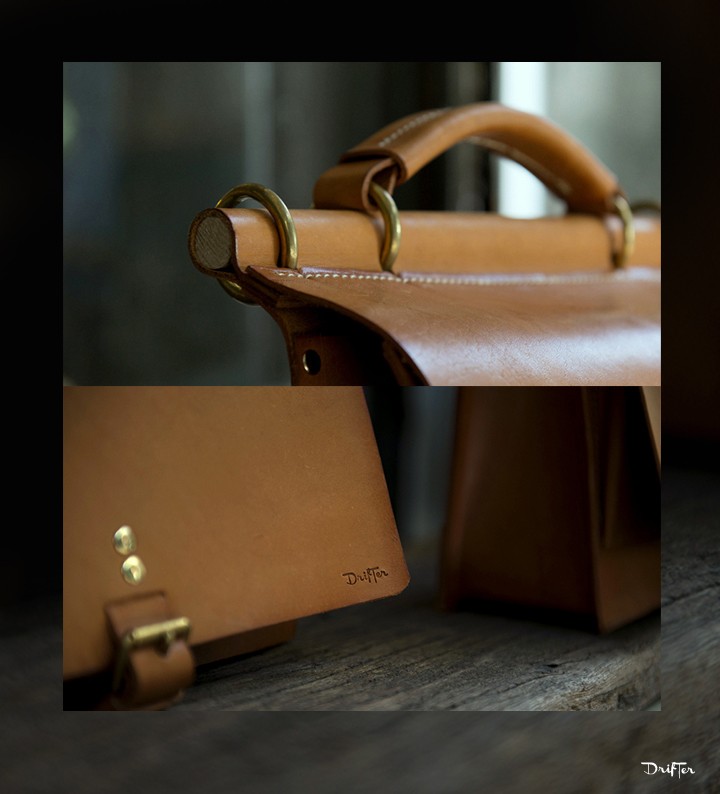 「皮革隨著時間、日照以及溫度變化而產生不同轉變的現象,猶如初戀般的滋味令人著迷。」不同於市售包包的材質,Drifter旅人採用天然植鞣素材,讓皮革手工包如同美酒一般,“越陳越香”越老越有味道,讓每一位使用 Drifter 旅人包包的朋友,都能夠”養“出自己最獨特的樣式包。