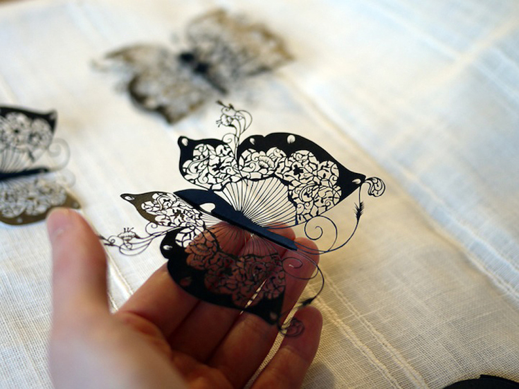 俱有日本血統的 Hina Aoyama 似乎天生就具有絕佳的工藝天份,細緻的作品,彷彿把日本人的嚴謹與耐心展露無遺。下面這一系列蝴蝶的作品,不難發現她每一次的創作都是獨一無二的。如果你再繼續看下去,就能夠看到她那幅讓人驚喜的文字剪紙作品,絕對讓你歎為觀止。