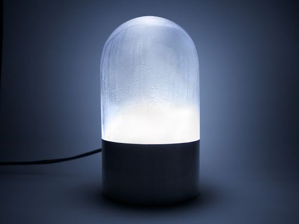 在工業設計蓬勃發展的時代,設計師們開始追求各種結合大自然元素的設計,Arturo Erbsman 發表一款以『水』為亮點的夜燈,雙層的玻璃夾層中裝了清水,藉由燈泡的熱度產生水氣並凝結在表面形成一層水珠,光線透過細小的水珠散射出柔和的光澤,營造出海洋的靜謐氣息,有這盞燈相伴,似乎夜間也比較好眠了~~~
