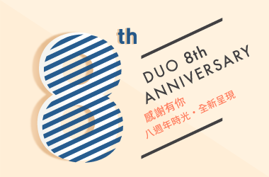 成立于2006年的台灣設計品牌「DUO雙生活」歡慶八週年,全新改版網站盛大重新開張!隨著品牌和忠實會員八年來的成長,DUO的調性也從注重青春趣味生活設計的「小大人」,轉變為以兼具成熟生活品味和赤子之心的「大小孩」,七年級的新血團隊更從兩位共同創辦人手中接棒成為營運主力,為品牌持續注入年輕活力。
