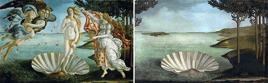 經典名畫拿掉大家熟知的主角人物後,幾乎像新的作品一樣,而這也似乎是José Manuel Ballester的目的,邀請大家從全新的角度,重新認識這些畫作。有些作品成了單純的風景畫,有的則像是悲劇現場,還有的可能根本讓你摸不著頭緒,但就是這些新的留白、新的空間,讓欣賞者跳脫舊有的框架,重新發現過去所忽略的細微之處,開啟重新解讀認識這些名畫的各種可能性。