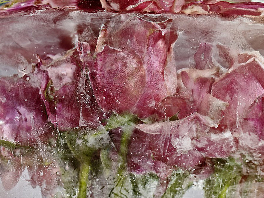 誰不想保存美麗的事物,但面對有限的保鮮期,總不能全把它們丟進冷凍庫裡,無限延長有效期限吧!日本藝術家 Kenji Shibata 的「Locked in the Ether」系列照片,將嬌嫩的花朵冰凍在冰塊的同時,也暫時封存了花朵的美麗,用鏡頭拍攝下來,無限延長花期。