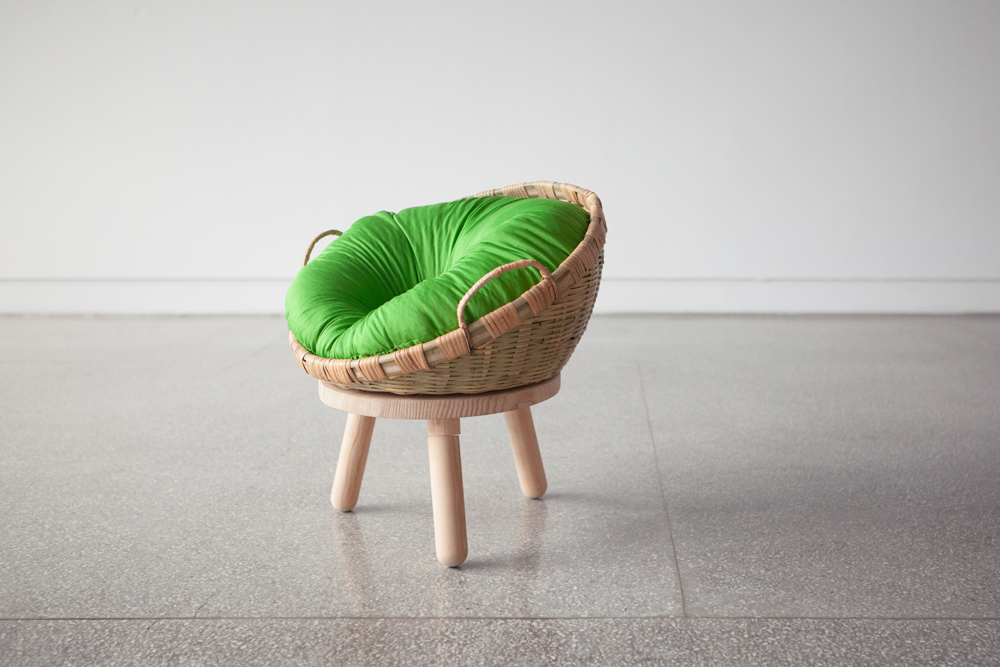 鈴木敏彥教授特別為這次展覽設計的 stump chair 迷你雅憩凳以台灣早期椅凳為概念,加上色彩鮮艷的軟Q坐墊而成。(友情門提供)