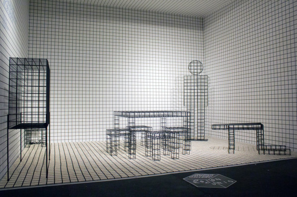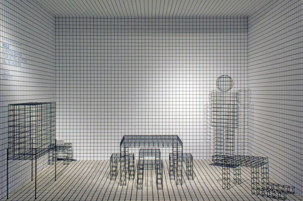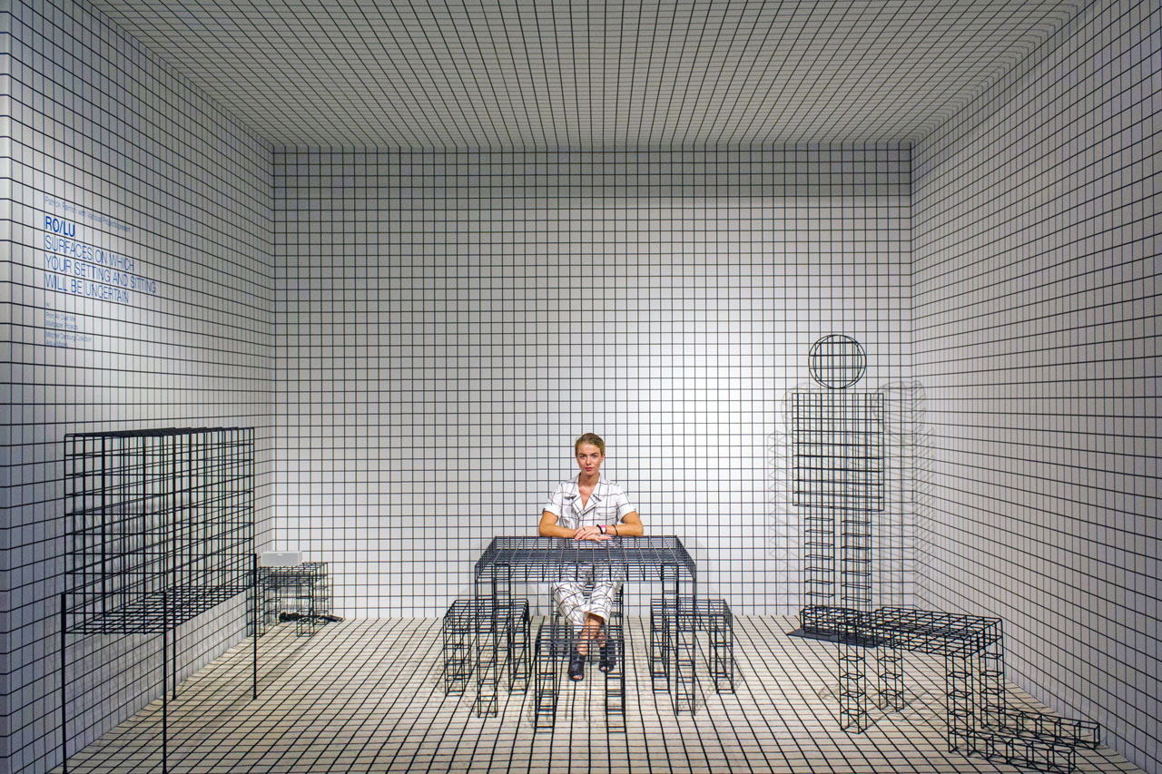 RO/LU過去就不斷持續以探索藝術史作為創作來源,從現有的藝術作品作為出發點,重新延伸出新的可能。而這次的作品,則是向建築師事務所Superstudio的Quaderna方桌系列致敬。焊接成方格子狀的金屬雕塑品,隨著欣賞者變換站立的角度,所看到的作品樣貌也有所不同,十分符合展覽的名稱--從不同角度、位置所看到的外觀是不確定的。