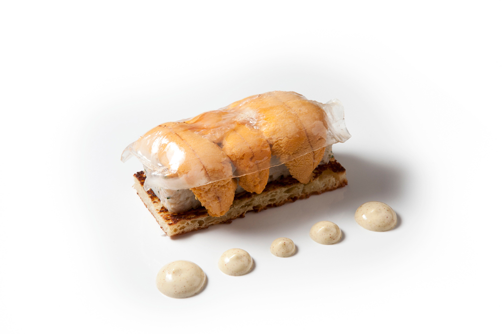 其實......不需要刻意的擺盤,只要毫不取巧的在蟹肉上,放上厚重到都垂下頭來的海膽,應該就足夠大家尖叫了!