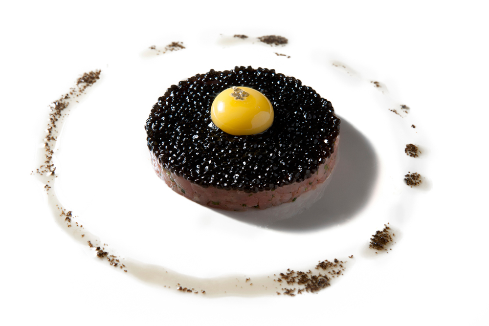 黃澄澄的鵪鶉蛋,擺放在舖滿松露的韃靼牛肉之上,完美同心圓的比例和鮮明的顏色對比,應該頗能提高大家對生牛肉的接受度吧!