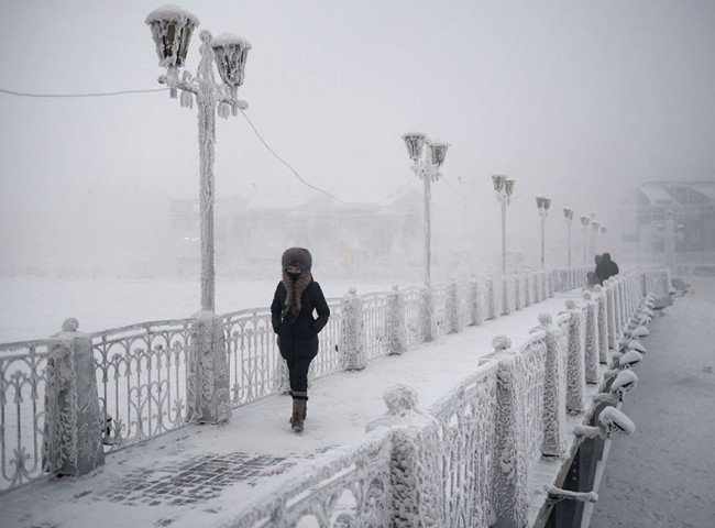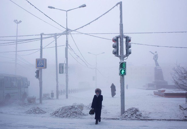 奧伊米亞康位於俄羅斯西伯利亞東北部,歷史上最冷的記錄出現在1933年,當時氣溫來到攝氏零下67.7度。不曉得是不是溫室效應、全球暖化的影響,現在1月份的平均溫度有稍微暖一些,上升到攝氏零下50度。由於氣溫太冷,農作物無法生長,市場裡只有魚和肉。農人們晚上得將牛群趕進牛舍中,以確保溫暖,車子也得停放在有暖氣的車庫,開出門後,千萬不能停火,否則汽車可是會發不動!