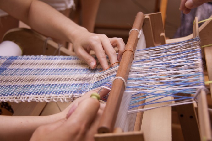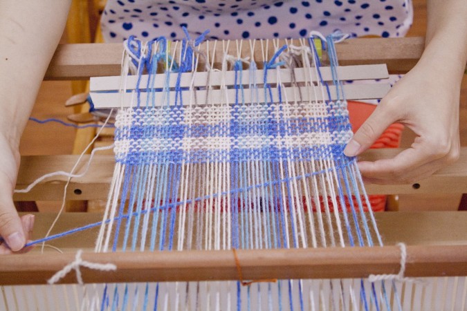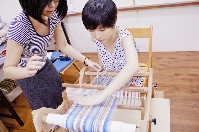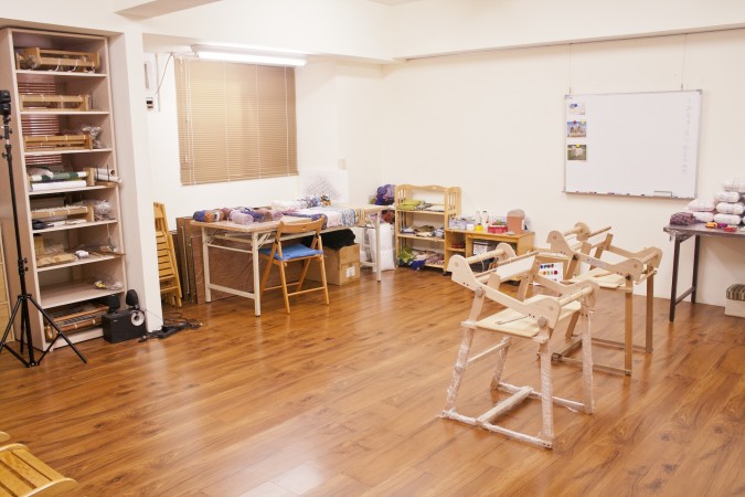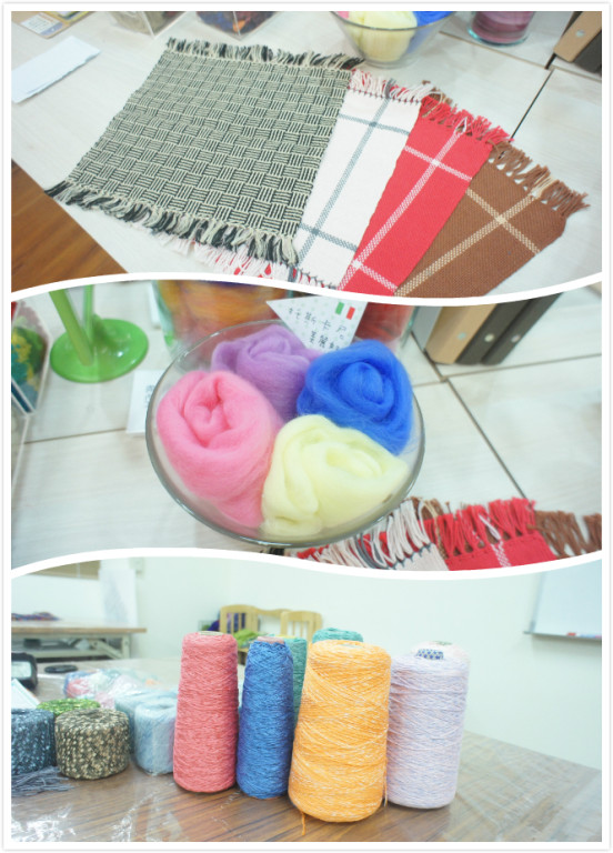 這次的「織圍巾」課程,來到成立二十年的「幅新手織」,學習如何用織布機親手織出圍巾,一進到教室,就看到五顏六色的繽紛牆面,上頭放滿了各種從紐西蘭進口的羊毛條毛線,以及各種織布、羊毛氈的創作作品。