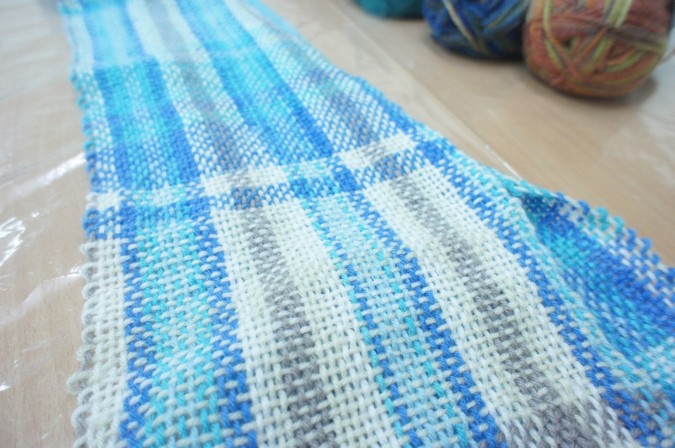 每當多織了一段,需要轉動固定器把先前織好的部分收納起來時,是我最開心的時候,因為這代表我離圍巾完成又前進一步啦!